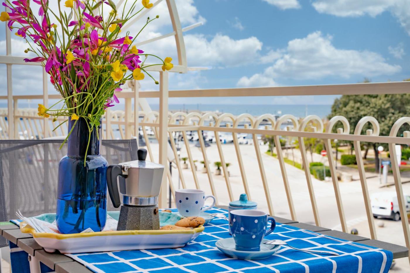 The holiday home provides guests with a balcony, sea views, a seating area, a flat-screen TV, a fully equipped kitchen with an oven and a fridge, and a private bathroom with bidet and a hair dryer. A stovetop and kitchenware are also featured, as well as a coffee machine. At the holiday home, the units come with bed linen and towels.