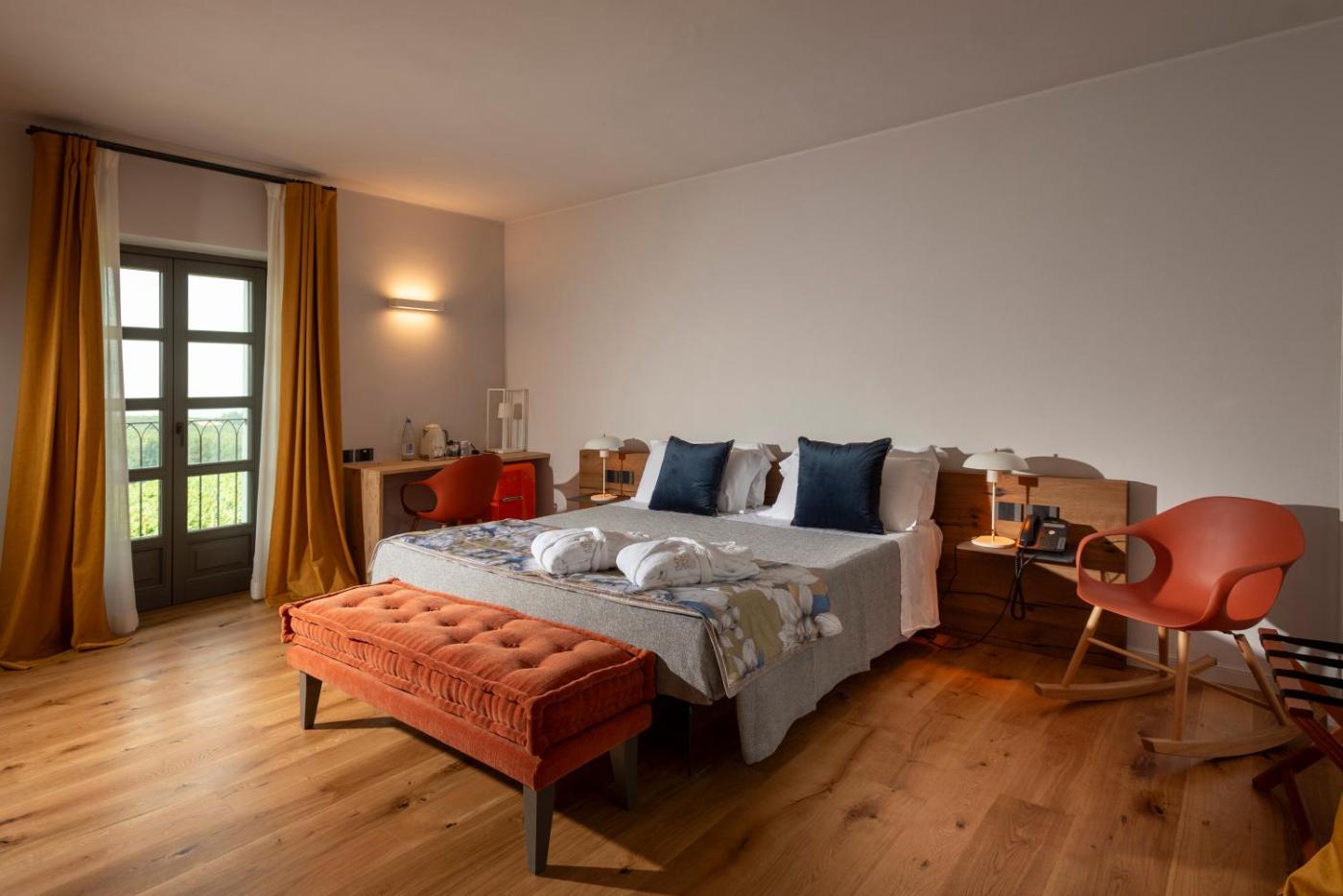 King Room with Pool View. The pool with a view and fireplace are the standout features of this double room. Featuring free toiletries and bathrobes, this double room includes a private bathroom with a shower, a bidet and a hairdryer. Among the room amenities are air conditioning, a private entrance, a minibar as well as a patio and garden views. The unit has 1 bed. ;