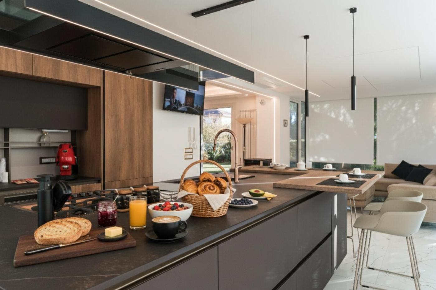 The spacious villa with a terrace and mountain views features 4 bedrooms, 2 living rooms, a flat-screen TV, an equipped kitchen with a dishwasher and an oven, and 4 bathrooms with a hot tub. Towels and bed linen are featured in the villa. For added privacy, the accommodation features a private entrance.