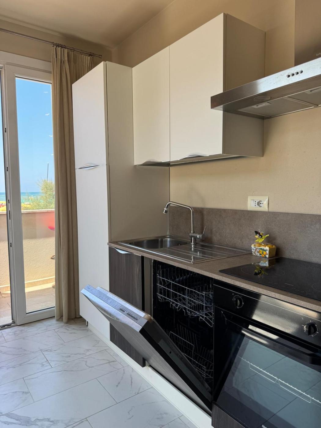 One-Bedroom Apartment. Boasting a private entrance, this air-conditioned apartment comes with 1 living room, 1 separate bedroom and 1 bathroom with a shower and a bidet. In the well-fitted kitchen, guests will find a stovetop, a refrigerator, a dishwasher and kitchenware. The spacious apartment features a flat-screen TV with streaming services, a washing machine, a tea and coffee maker, a seating area as well as sea views. The unit has 2 beds.